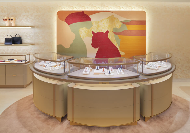 This boutique marries French luxury with Oriental artistry, boasting a warm, fluid space defined by curved display counters,