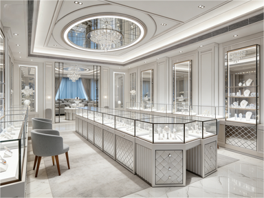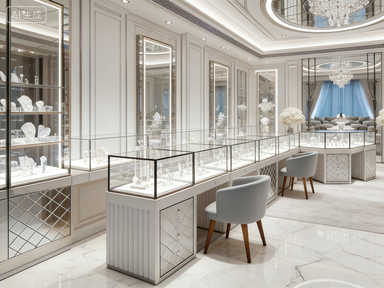 • Aesthetic Identity: Classic French molding, crystal chandeliers, and soft white tones embody luxury and elegance, perfectly matching the brilliance of fine jewelry.