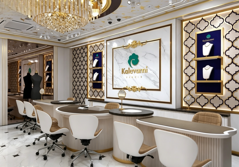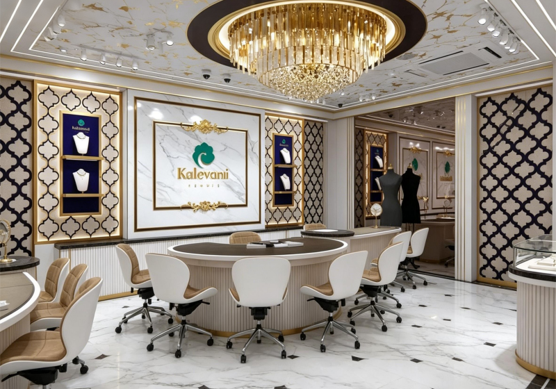 Luxury Kalevarm Gold & White High-End Jewelry Store Display Suite
