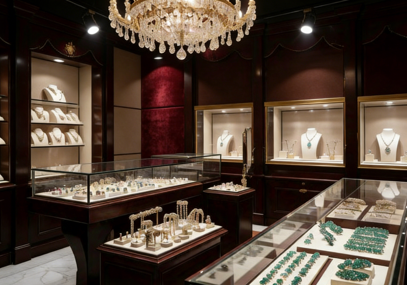 In premium shopping malls, a jewelry store must stand out with luxury presentation, professional display, and a comfortable customer experience.