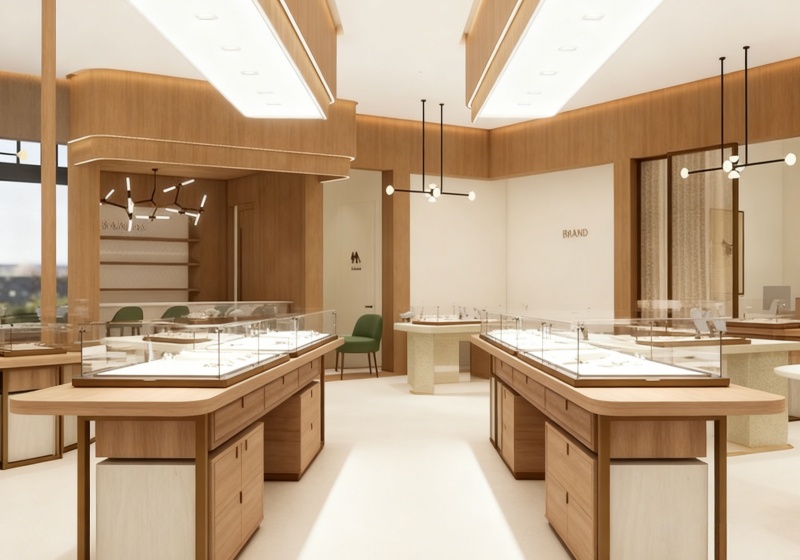 Plan an open spatial layout (with large central display counters) to enhance jewelry accessibility for daily browsing & try-on.