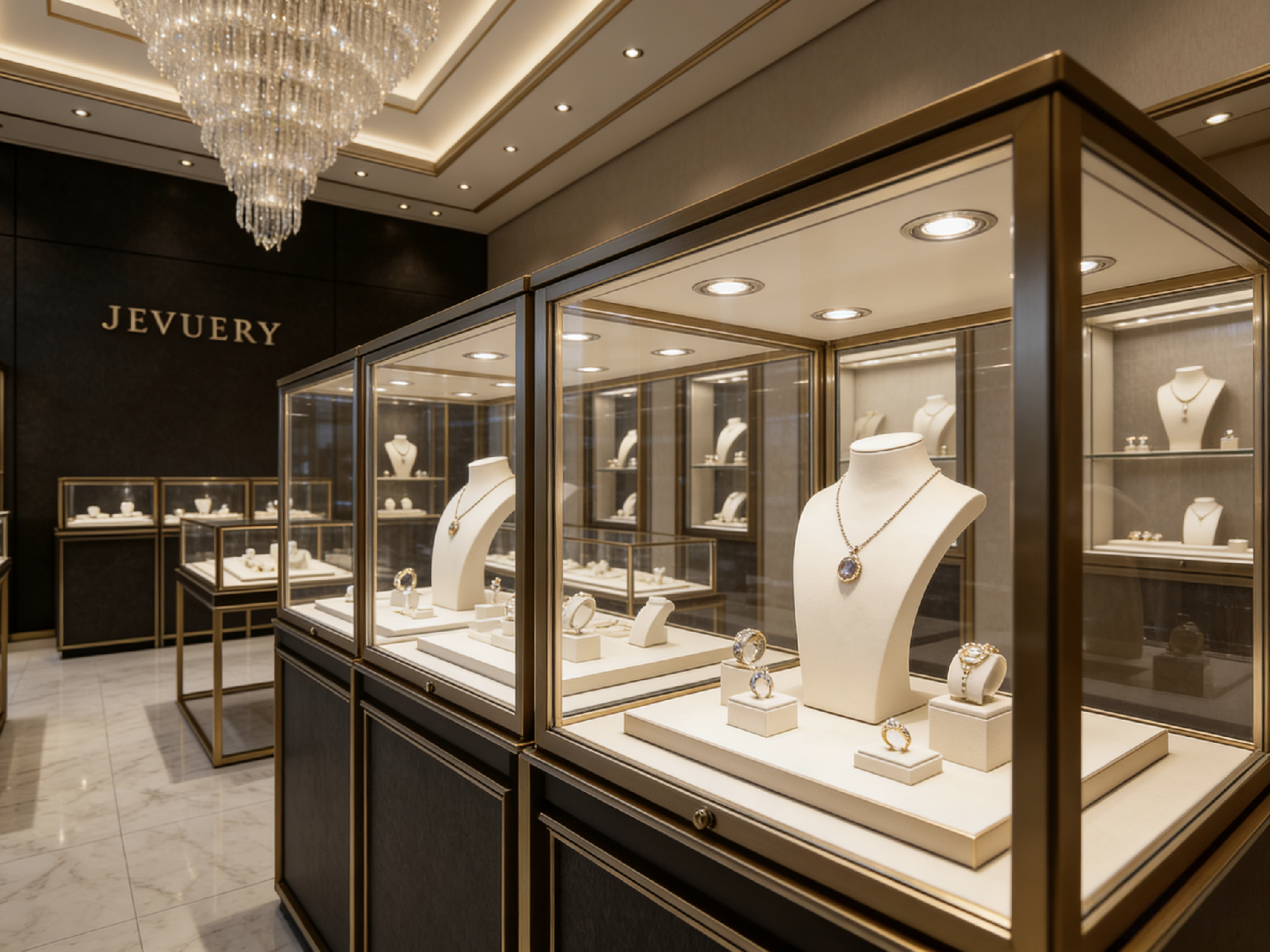 If you want to design a minimalist luxury jewelry store with black and gold tones, we offer key design tips: