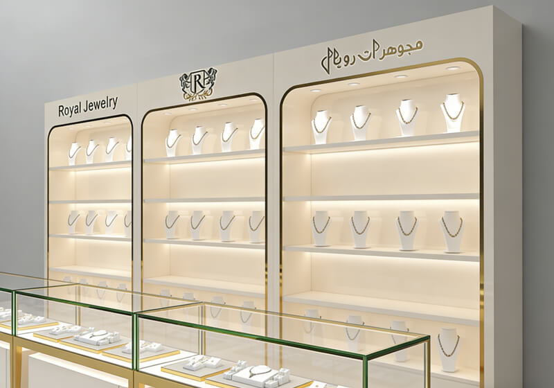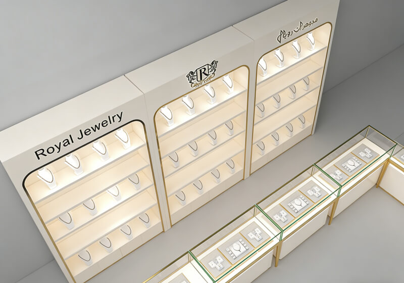 Premium Finish Combinations: Creamy matte panels + gold trim (the signature of the Royal design) create a “regal yet modern” look that complements diamond, pearl, and fine gemstone collections.