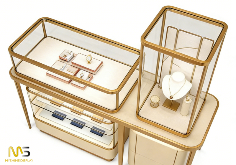 Luxury Rose Gold Curved Jewelry Display Showcase