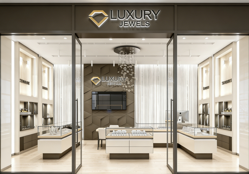 Leather Modern Jewelry Showcase with Ambient Lighting