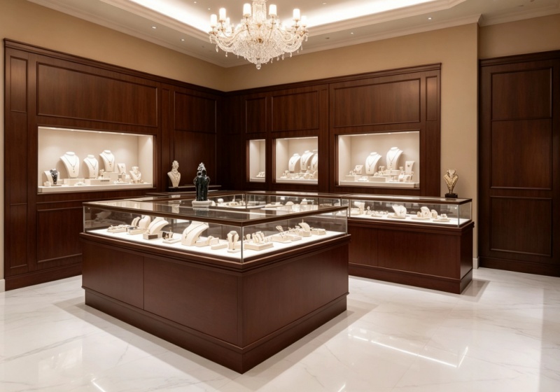 Equipped with energy-efficient LED lighting systems (warm white), each showcase enhances the sparkle of diamonds and gemstones without generating excessive heat.