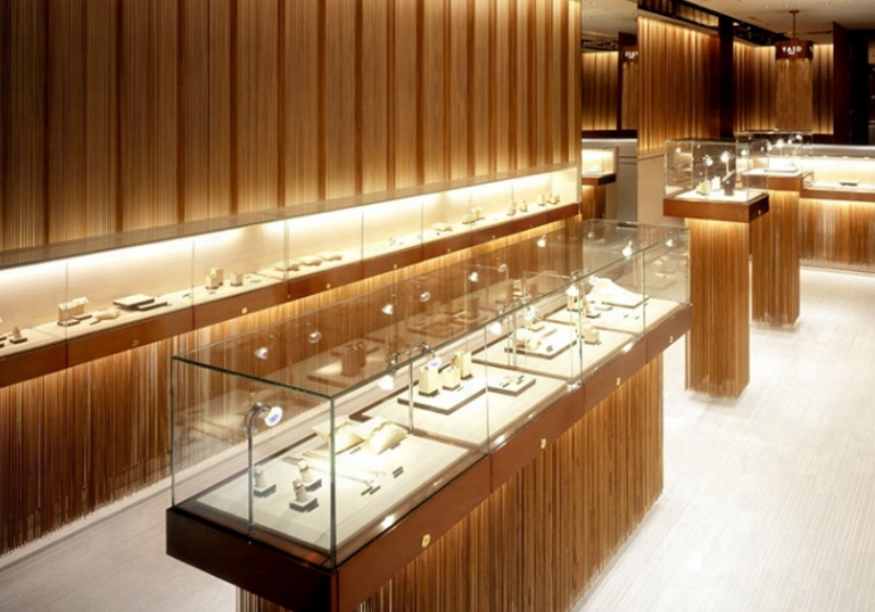 Security: Tempered glass and lockable cabinetry ensure the safety of high-value jewelry items.