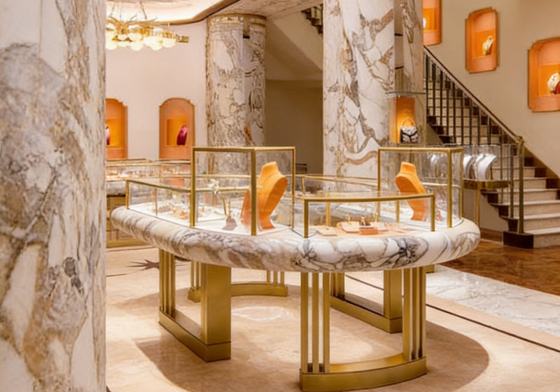 The open layout boosts traffic flow and visibility, perfect for high-end brands,