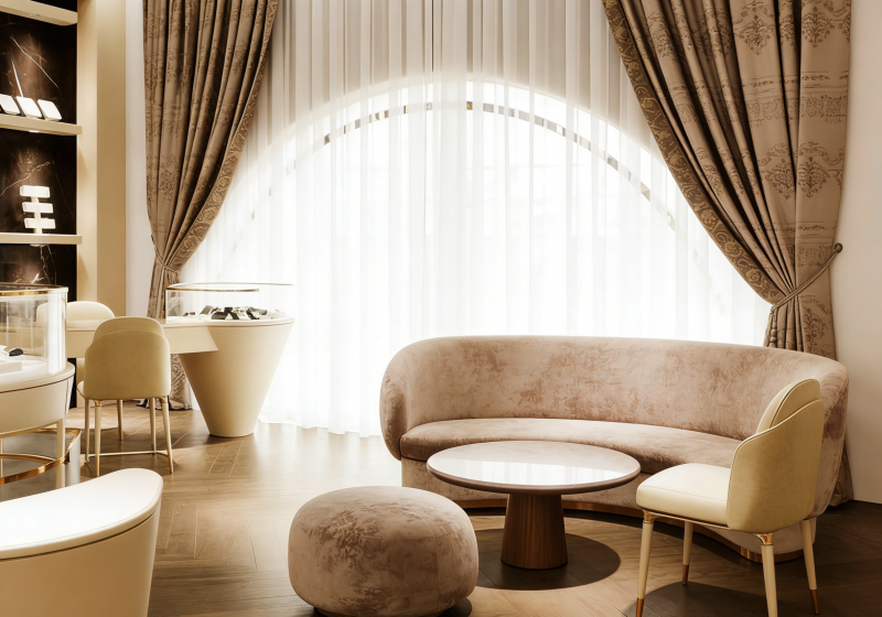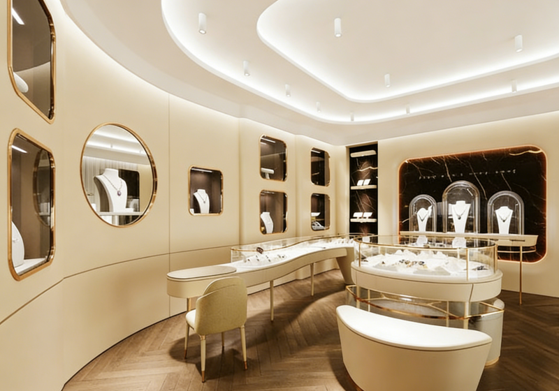 At MyShine, we believe that luxury should feel warm, inviting, and deeply personal. Our Parisian-inspired soft luxury jewelry display cases, designed to echo the romantic, boutique aesthetic of your reference store, are crafted to transform your retail space into a haven of understated opulence. Drawing from the timeless elegance of Parisian jewelry salons, these display solutions blend soft curves, rich textures, and a warm neutral palette to create an environment where your jewelry becomes the heart of the story.