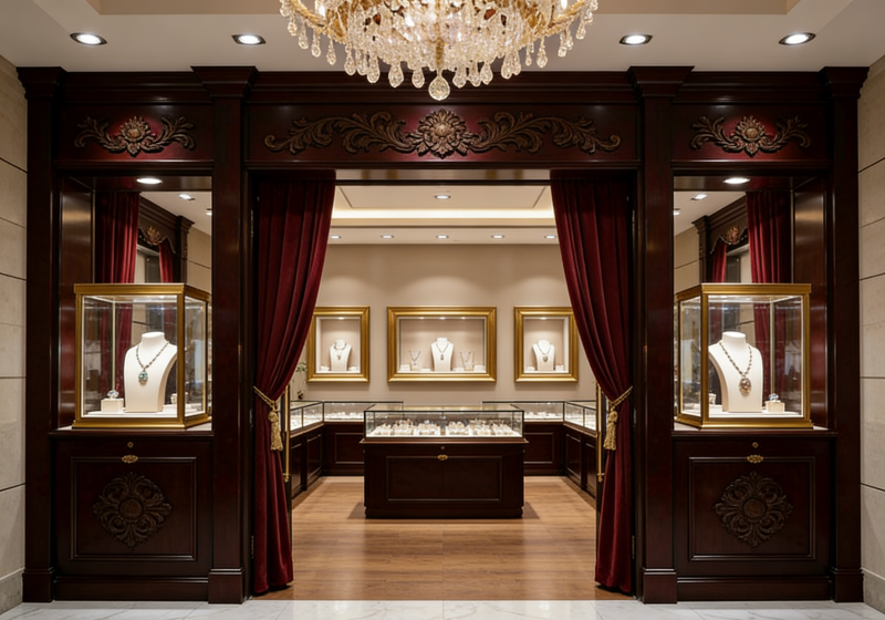 In premium shopping malls, a jewelry store must stand out with luxury presentation, professional display, and a comfortable customer experience.