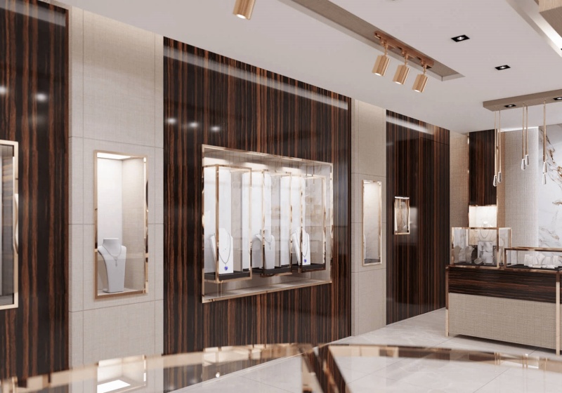 As jewelry becomes increasingly popular with a wide range of consumers, jewelers are also putting considerable effort into competing in jewelry store design. The image on the right shows a modern, high-end jewelry store.