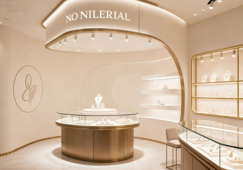 Combining floating luminous ceilings, arched doorways and circular showcases to create a soft, refined space for daily light luxury jewelry and designer pieces: