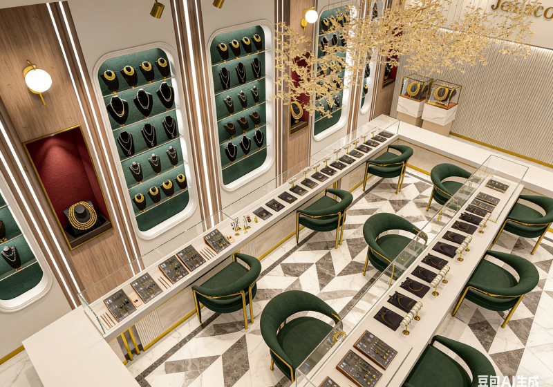 If you want to create a jewelry store that blends traditional Chinese charm with high-end luxury, this red-and-gold design will highlight gold jewelry with dignified elegance:Build a distinctive brand image with Chinese-style arches, golden trims and red accent tones.Plan a symmetrical spatial layout with layered display areas to guide customer flow and showcase products.Use luminous display cases with red velvet linings to enhance the luster of gold jewelry....