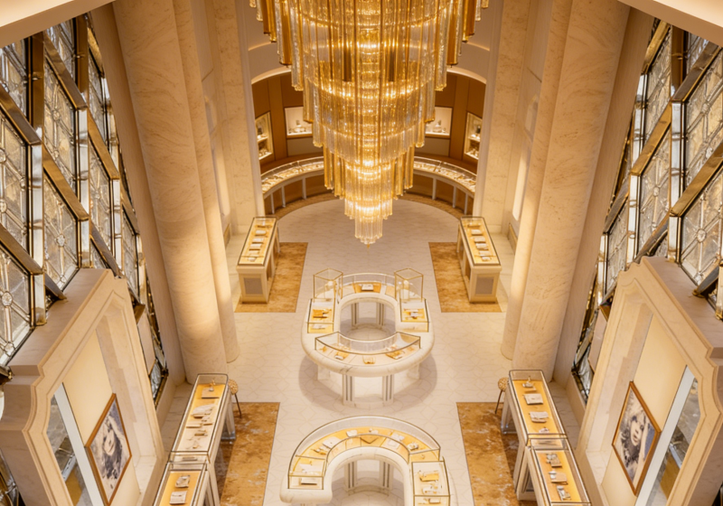 Marble & Gold Palace-Style Luxury Jewelry Store Interior Design